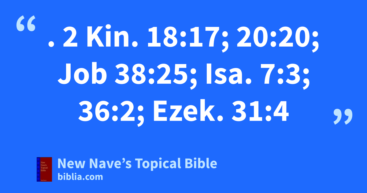 AQUEDUCT. 2 Kin. 18:17; 20:20; Job 38:25; Isa. 7:3; 36:2; Ezek. 31:4