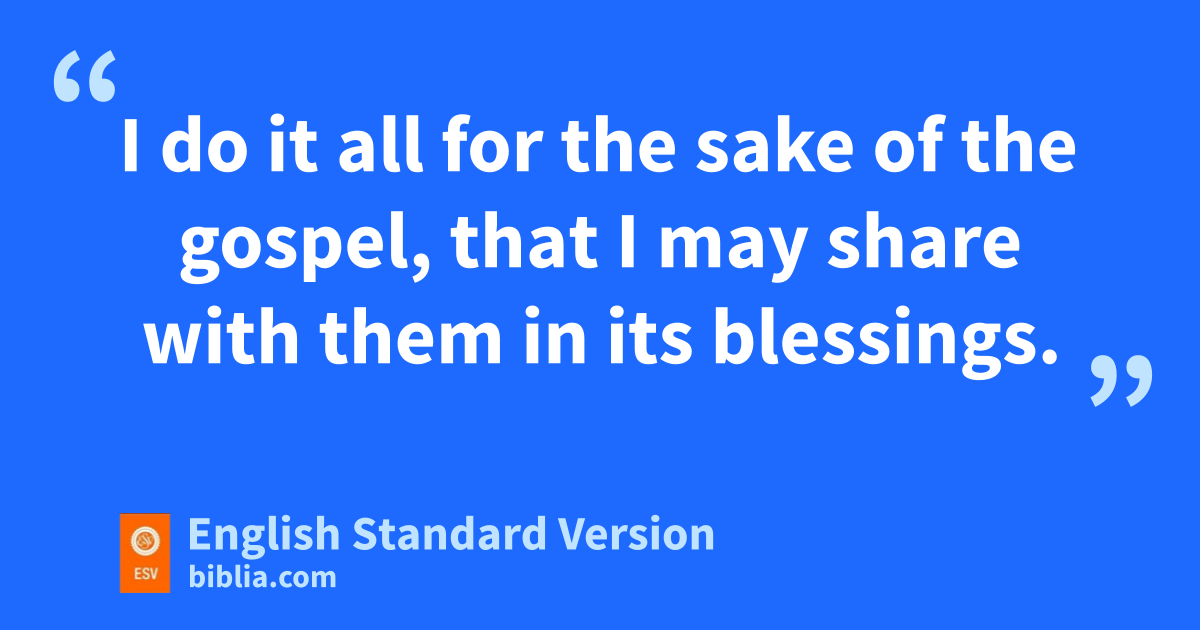 19 For hthough I am free from all, iI have made myself a servant to all, that I might jwin more of them. 20 kTo the Jews I became as a Jew, in order to win Jews. To those under the law I became as one under the law (though not being myself under the law) that I might win those under the law. 21 To lthose outside the law I became mas one outside the law (not being outside the law of God but nunder the law of Christ) that I might win those outside the law. 22 oTo the weak I became weak, that I might win the weak. pI have become all things to all people, that qby all means I might save some. 23 I do it all for the sake of the gospel, rthat I may share with them in its blessings.