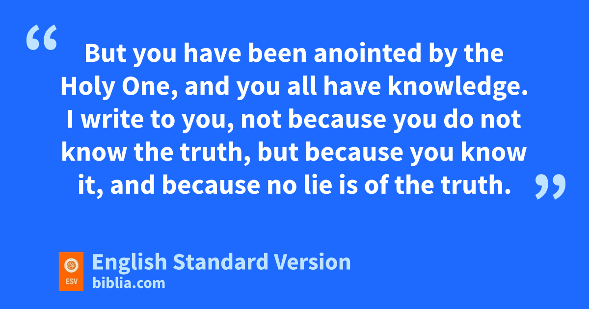 26 I write these things to you about pthose who are trying to deceive you. 27 But qthe anointing that you received from him abides in you, and ryou have no need that anyone should teach you. But as his anointing teaches you about everything, and sis true, and is no lie—just as it has taught you, abide in him.