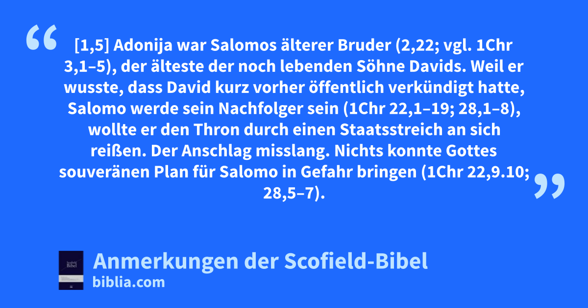 1 Ki 1:5 1 Ki 2:22 * 1 Ch 3:1–5 1 Ch 22:1–19 1 Ch 28:1–8 1 Ch 22:9 1 Ch 22:10 1 Ch 28:5–7