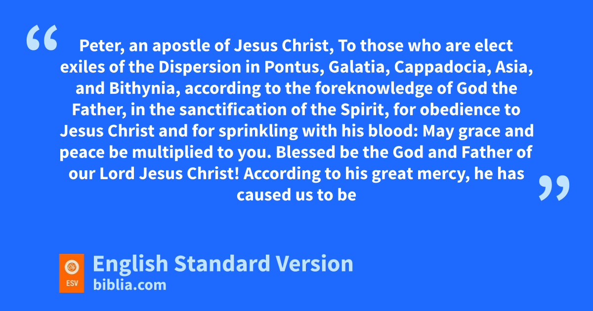 To those who are elect exiles of athe Dispersion in Pontus, Galatia, Cappadocia, Asia, and Bithynia, 2 according to bthe foreknowledge of God the Father, cin the sanctification of the Spirit, for obedience to Jesus Christ and dfor sprinkling with his blood: