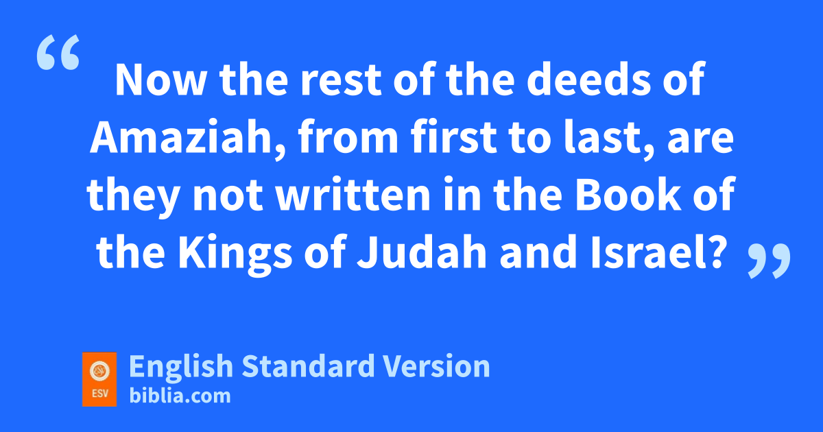 25 dAmaziah the son of Joash, king of Judah, lived fifteen years after the death of Joash the son of Jehoahaz, king of Israel. 26 Now the rest of the deeds of Amaziah, from first to last, are they not written in the Book of the Kings of Judah and Israel? 27 From the time when he turned away from the Lord they made a conspiracy against him in Jerusalem, and he fled to Lachish. But they sent after him to Lachish and put him to death there. 28 And they brought him upon horses, and he was buried with his fathers in the city of David.4