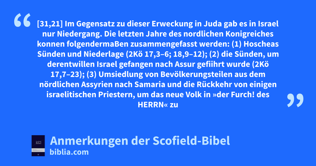 2 Ch 31:21 2 Ki 17:3–6 2 Ki 18:9–12 2 Ki 17:7–23 2 Ki 17:24–41