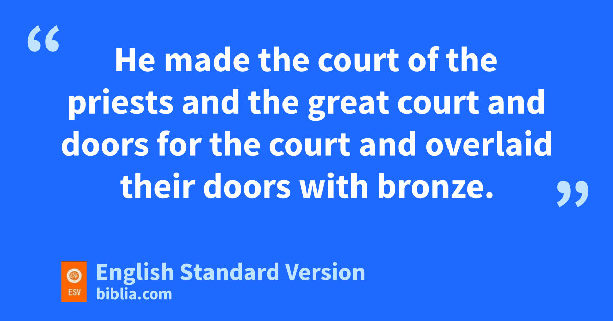 7 And he made ten golden lampstands oas prescribed, and set them in the temple, five on the south side and five on the north. 8 pHe also made ten tables and placed them in the temple, five on the south side and five on the north. And he made a hundred basins of gold. 9 He made qthe court of the priests rand the great court and doors for the court and overlaid their doors with bronze. 10 sAnd he set the sea at the southeast corner of the house.