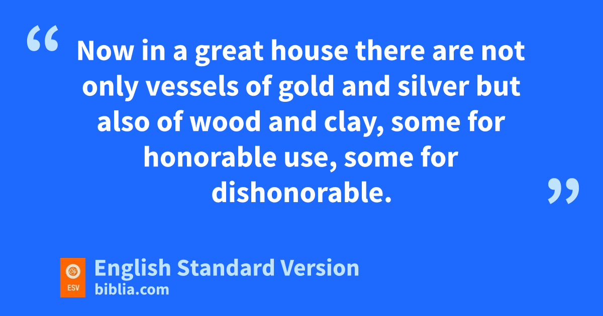 20 Now in ia great house there are not only vessels of gold and silver but also of wood and clay, jsome for honorable use, some for dishonorable. 21 Therefore, kif anyone cleanses himself from what is dishonorable,4 he will be a vessel for honorable use, set apart as holy, useful to the master of the house, lready for every good work.