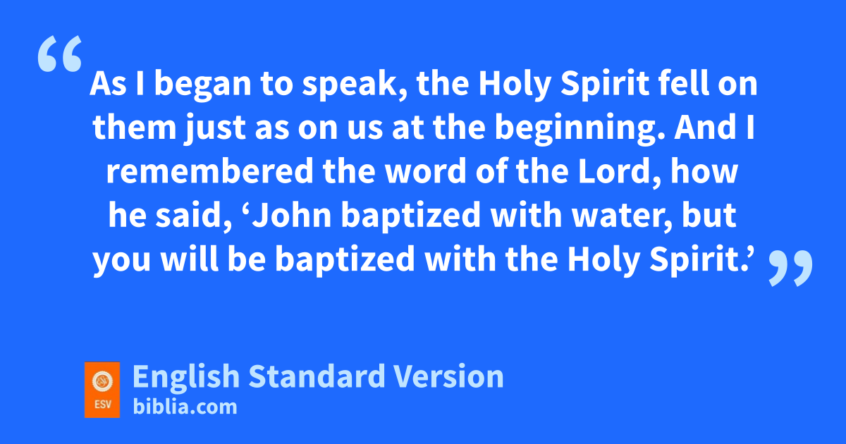 11 Now the apostles and rthe brothers1 who were throughout Judea heard that the Gentiles also had received the word of God. 2 So when Peter went up to Jerusalem, sthe circumcision party2 criticized him, saying, 3 t“You went to uncircumcised men and uate with them.” 4 But Peter began and explained it to them in order: 5 v“I was in the city of Joppa praying, and in a trance I saw a vision, something like a great sheet descending, being let down from heaven by its four corners, and it came down to me. 6 Looking at it closely, I observed animals and beasts of prey and reptiles and birds of the air. 7 And I heard a voice saying to me, ‘Rise, Peter; kill and eat.’ 8 But I said, ‘By no means, Lord; for nothing common or unclean has ever entered my mouth.’ 9 But the voice answered a second time from heaven, ‘What God has made clean, do not call common.’ 10 This happened three times, and all was drawn up again into heaven. 11 And behold, at that very moment three men arrived at the house in which we were, sent to me from Caesarea. 12 And the Spirit told me to go with them, wmaking no distinction. xThese six brothers also accompanied me, and we entered the man’s house. 13 And he told us how he had seen the angel stand in his house and say, ‘Send to Joppa and bring Simon who is called Peter; 14 yhe will declare to you a message by which zyou will be saved, you and all your household.’ 15 As I began to speak, athe Holy Spirit fell on them bjust as on us at the beginning. 16 And I remembered the word of the Lord, how he said, c‘John baptized with water, but you will be baptized with the Holy Spirit.’ 17 If then dGod gave ethe same gift to them as he gave to us fwhen we believed in the Lord Jesus Christ, gwho was I hthat I could stand in God’s way?” 18 When they heard these things they fell silent. And they iglorified God, saying, j“Then to the Gentiles also God has kgranted lrepentance that leads to life.”