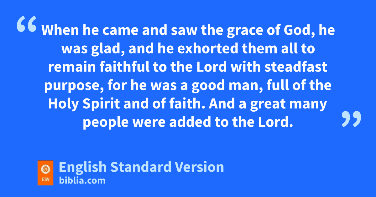 19 mNow those who were scattered because of the persecution that arose over Stephen traveled as far as Phoenicia and Cyprus and Antioch, speaking the word to no one except Jews. 20 But there were some of them, men of Cyprus and Cyrene, who on coming to Antioch spoke to the Hellenists3 also, npreaching the Lord Jesus. 21 And othe hand of the Lord was with them, and a great number who believed pturned to the Lord. 22 The report of this came to the ears of the church in Jerusalem, and they sent Barnabas to Antioch. 23 When he came and saw qthe grace of God, he was glad, and he exhorted them all to remain faithful to the Lord rwith steadfast purpose, 24 for he was a good man, sfull of the Holy Spirit and of faith. And a great many people twere added to the Lord. 25 So Barnabas went to uTarsus to look for Saul, 26 and when he had found him, he brought him to Antioch. For a whole year they met with the church and taught a great many people. And in Antioch the disciples were first called vChristians.