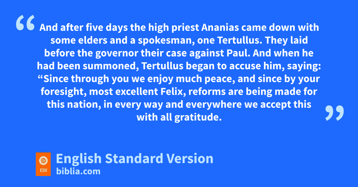24 And safter five days the high priest tAnanias came down with some elders and a spokesman, one Tertullus. They laid before uthe governor their case against Paul. 2 And when he had been summoned, Tertullus began to accuse him, saying: