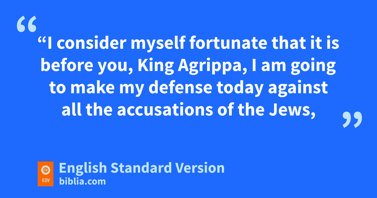 2 “I consider myself fortunate that it is before you, King Agrippa, I am going to make my defense today magainst all the accusations of the Jews, 3 especially because you are familiar with all the ncustoms and ocontroversies of the Jews. Therefore I beg you to listen to me patiently.