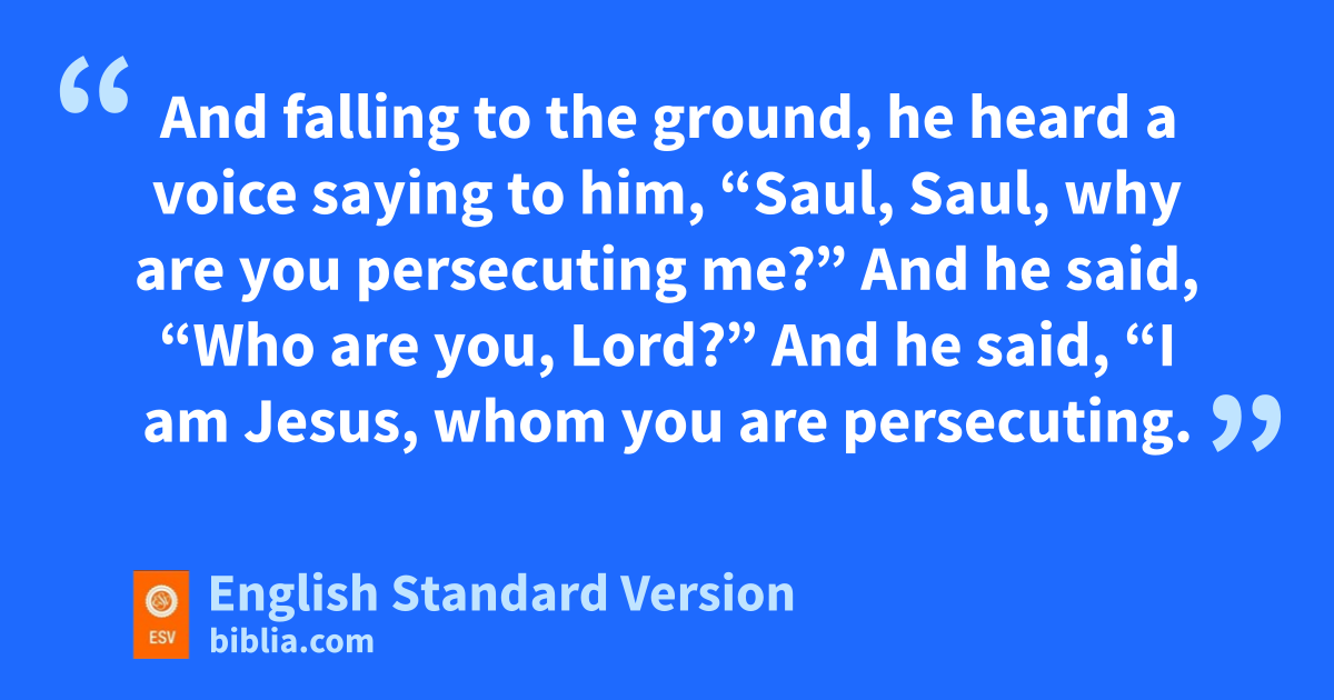 9 But Saul, bstill cbreathing threats and murder against the disciples of the Lord, went to dthe high priest 2 and asked him for letters eto the synagogues at Damascus, so that if he found any belonging to fthe Way, men or women, he might bring them bound to Jerusalem. 3 gNow as he went on his way, he approached Damascus, and suddenly a light from heaven shone around him. 4 And falling to the ground, he heard a voice saying to him, “Saul, Saul, why are you persecuting hme?” 5 And he said, “Who are you, Lord?” And he said, “I am Jesus, hwhom you are persecuting. 6 But irise and enter the city, and you will be told jwhat you are to do.” 7 kThe men who were traveling with him stood speechless, lhearing the voice but seeing no one. 8 Saul rose from the ground, and although his eyes were opened, mhe saw nothing. So they led him by the hand and brought him into Damascus. 9 And for three days he was without sight, and neither ate nor drank.