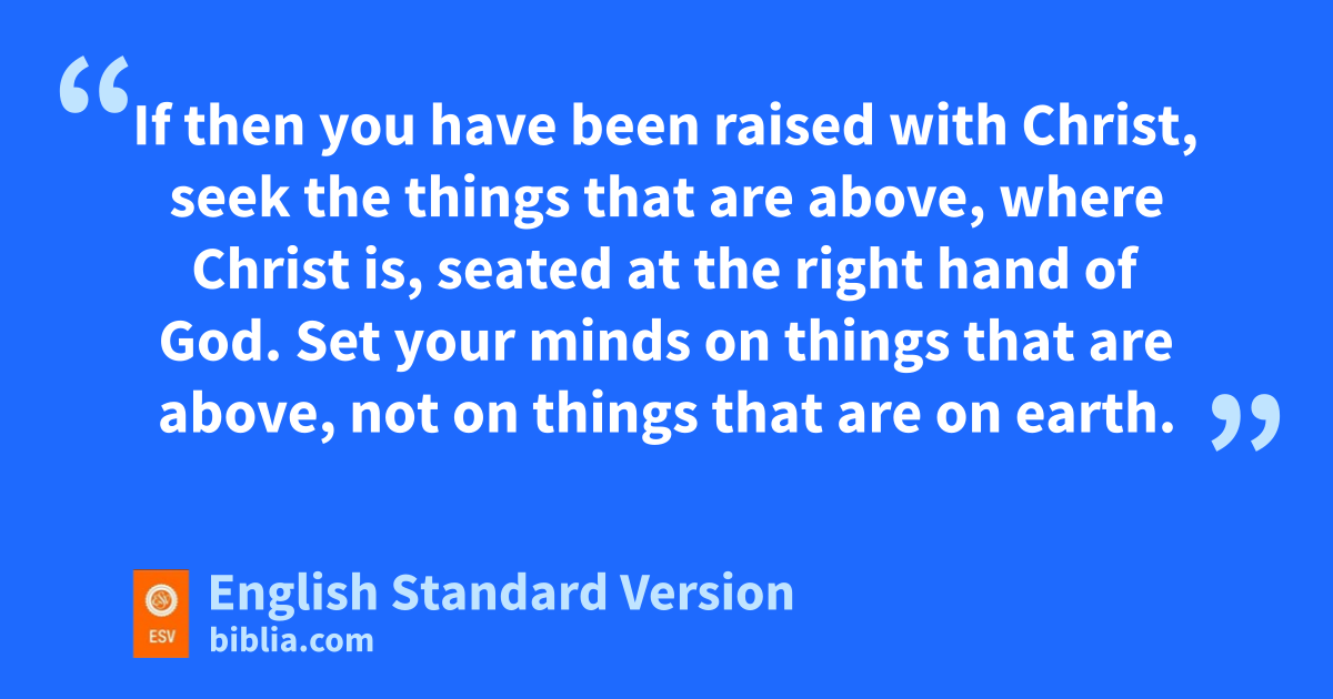 3 bIf then you have been raised with Christ, seek cthe things that are above, where Christ is, dseated at the right hand of God. 2 eSet your minds on things that are above, not on things that are on earth. 3 For fyou have died, and your life is hidden with Christ in God. 4 When Christ gwho is your1 life happears, then you also will appear with him iin glory.