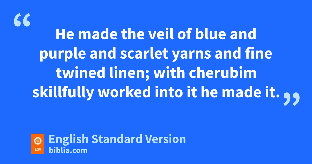 35 rHe made the veil of blue and purple and scarlet yarns and fine twined linen; with cherubim skillfully worked into it he made it. 36 And for it he made four pillars of acacia and overlaid them with gold. Their hooks were of gold, and he cast for them four bases of silver. 37 He also made a screen for the entrance of the tent, of blue and purple and scarlet yarns and fine twined linen, embroidered with needlework, 38 and its five pillars with their hooks. He overlaid their capitals, and their fillets were of gold, but their five bases were of bronze.