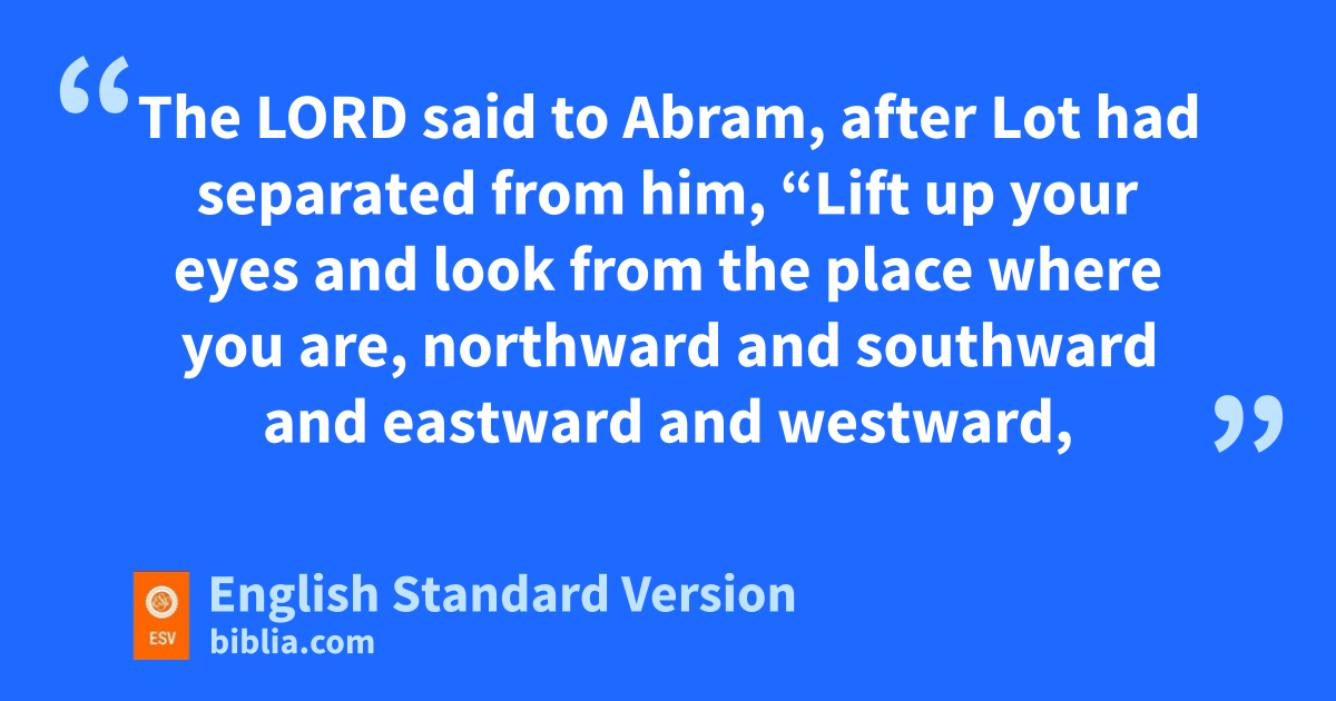 14 The Lord said to Abram, after Lot had separated from him, “Lift up your eyes and look from the place where you are, onorthward and southward and eastward and westward, 15 for all the land that you see I will give pto you and qto your offspring forever. 16 rI will make your offspring as the dust of the earth, so that if one can count the dust of the earth, your offspring also can be counted. 17 Arise, walk through the length and the breadth of the land, for I will give it to you.” 18 So Abram moved his tent and came and ssettled by the toaks2 of Mamre, which uare at Hebron, and there he built an altar to the Lord.