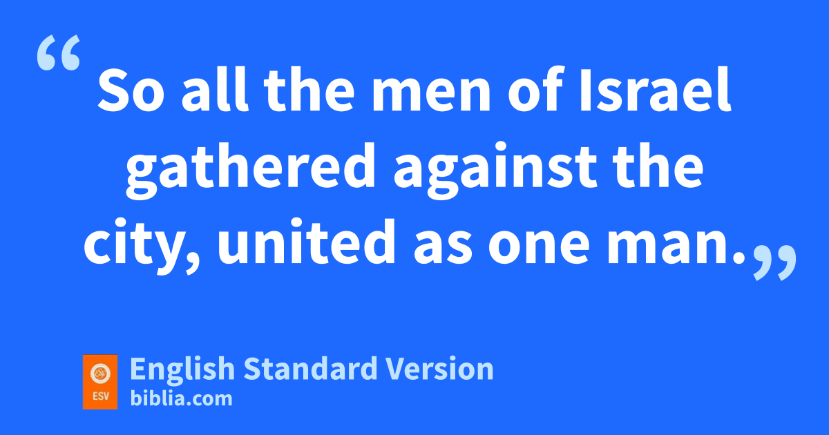 8 And all the people arose as one man, saying, “None of us will go to his tent, and none of us will return to his house. 9 But now this is what we will do to Gibeah: we will go up against it by lot, 10 and we will take ten men of a hundred throughout all the tribes of Israel, and a hundred of a thousand, and a thousand of ten thousand, to bring provisions for the people, that when they come they may repay Gibeah of Benjamin for all the outrage that they have committed in Israel.” 11 So all the men of Israel gathered against the city, united as one man.