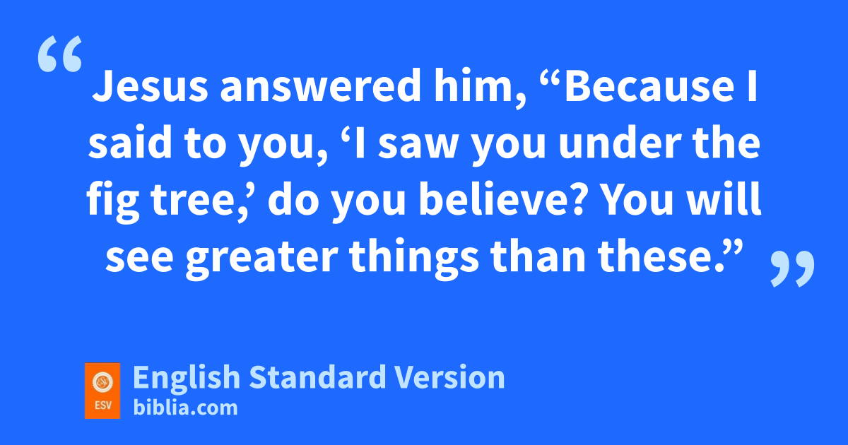 43 qThe next day Jesus decided rto go to Galilee. He found Philip and said to him, “Follow me.” 44 Now sPhilip was from Bethsaida, the city of Andrew and Peter. 45 Philip found tNathanael and said to him, “We have found him of whom uMoses in the Law and also the prophets wrote, Jesus vof Nazareth, wthe son of Joseph.” 46 Nathanael said to him, x“Can anything good come out of Nazareth?” Philip said to him, “Come and see.” 47 Jesus saw Nathanael coming toward him and said of him, “Behold, yan Israelite indeed, zin whom there is no deceit!” 48 Nathanael said to him, “How ado you know me?” Jesus answered him, “Before Philip called you, when you were under the fig tree, I saw you.” 49 Nathanael answered him, b“Rabbi, cyou are the Son of God! You are the dKing of Israel!” 50 Jesus answered him, “Because I said to you, ‘I saw you under the fig tree,’ do you believe? You will see greater things than these.” 51 And he said to him, “Truly, truly, I say to you,13 you will see eheaven opened, and fthe angels of God ascending and descending on gthe Son of Man.”