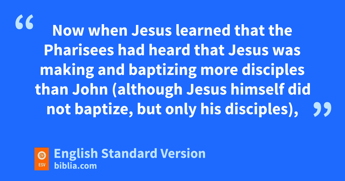 4 Now when Jesus learned that the Pharisees had heard that Jesus was making and bbaptizing more disciples than John 2(although Jesus himself did not baptize, but only his disciples), 3 he left Judea and departed cagain for Galilee. 4 dAnd he had to pass through Samaria. 5 So he came to a town of Samaria called Sychar, near the field ethat Jacob had given to his son Joseph. 6 Jacob’s well was there; so Jesus, fwearied as he was from his journey, was sitting beside the well. It was about the sixth hour.1