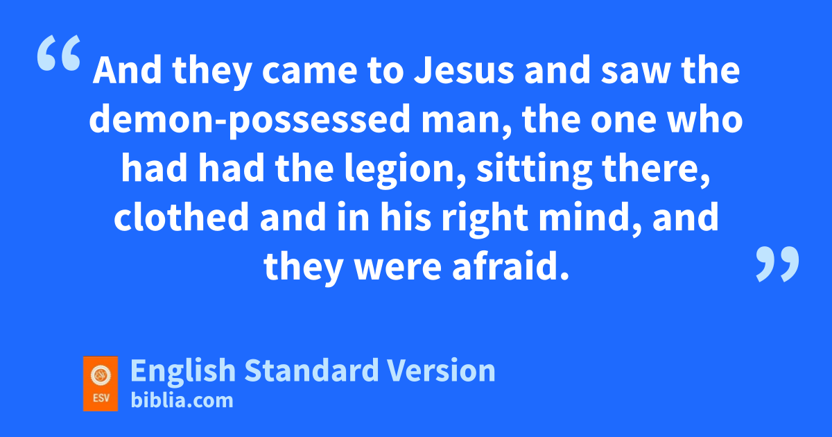 14 The herdsmen fled and told it in the city and in the country. And people came to see what it was that had happened. 15 And they came to Jesus and saw the demon-possessed3 man, the one who had had cthe legion, sitting there, dclothed and in his right mind, and they were afraid. 16 And those who had seen it described to them what had happened to the demon-possessed man and to the pigs. 17 And ethey began to beg Jesus4 to depart from their region. 18 As he was getting into the boat, the man who had been possessed with demons begged him that he might be with him. 19 And he did not permit him but said to him, “Go home to your friends and ftell them how much the Lord has done for you, and how he has had mercy on you.” 20 And he went away and began to proclaim in gthe Decapolis how much Jesus had done for him, and everyone marveled.