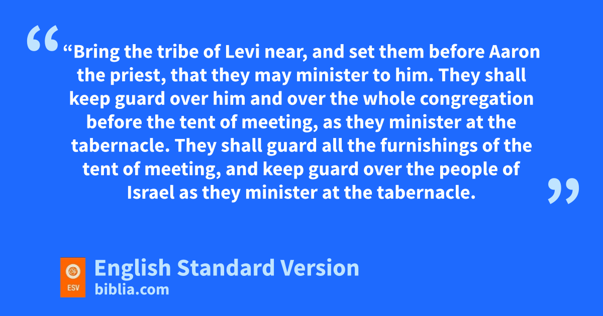 5 And the Lord spoke to Moses, saying, 6 h“Bring the tribe of Levi near, and set them before Aaron the priest, that they may minister to him. 7 They shall keep guard over him and over the whole congregation before the tent of meeting, ias they minister at the tabernacle. 8 They shall guard all the furnishings of the tent of meeting, and keep guard over the people of Israel as they minister at the tabernacle. 9 And jyou shall give the Levites to Aaron and his sons; they are kwholly given to him from among the people of Israel. 10 And you shall appoint Aaron and his sons, and lthey shall guard their priesthood. But if many outsider comes near, he shall be put to death.”