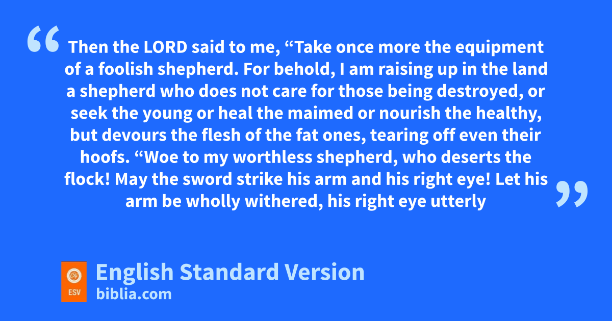 15 Then the Lord said to me, “Take once more the equipment of ca foolish shepherd. 16 For behold, I am raising up in the land a shepherd dwho does not care for those being destroyed, or seek the young or heal the maimed or nourish the healthy, but edevours the flesh of the fat ones, tearing off even their hoofs.